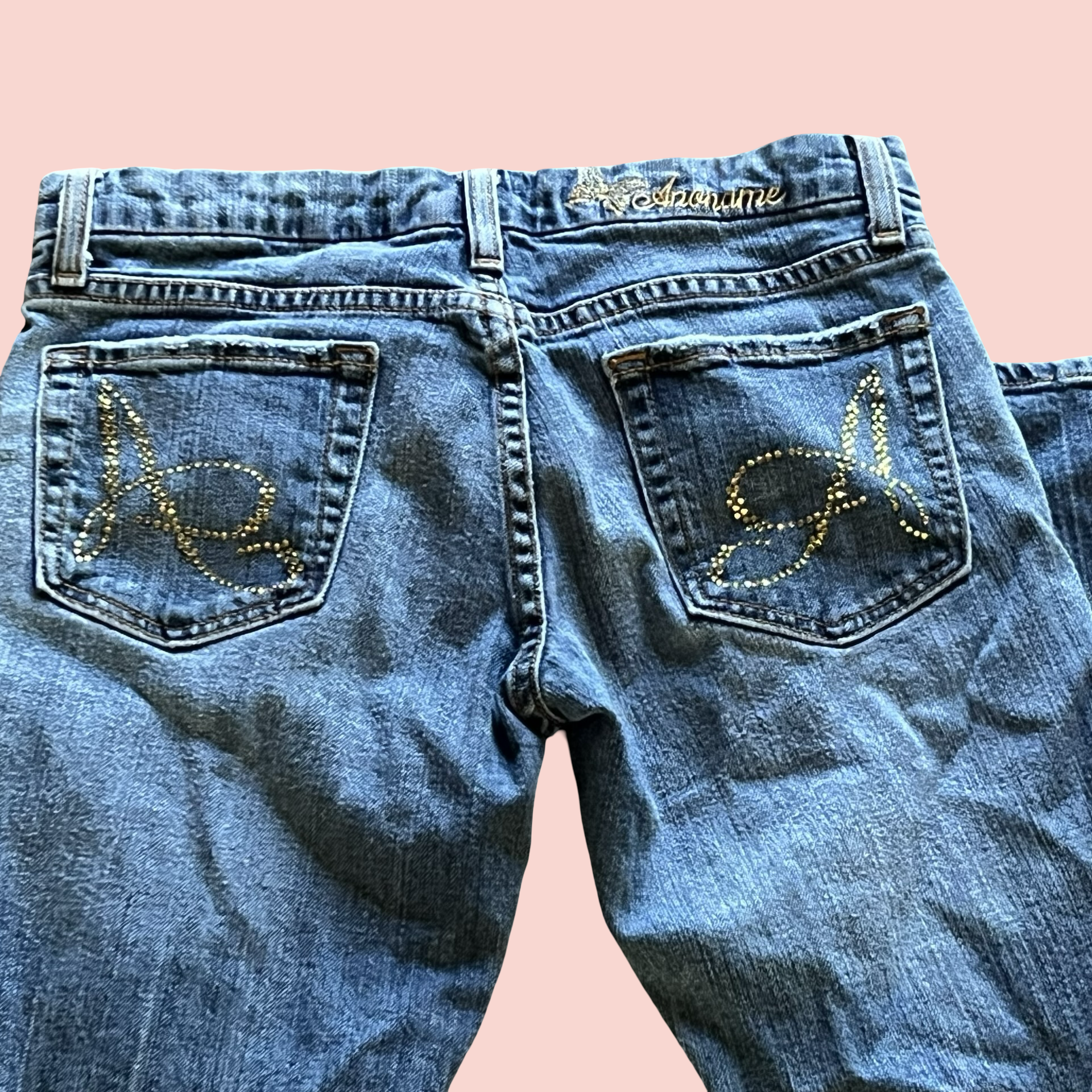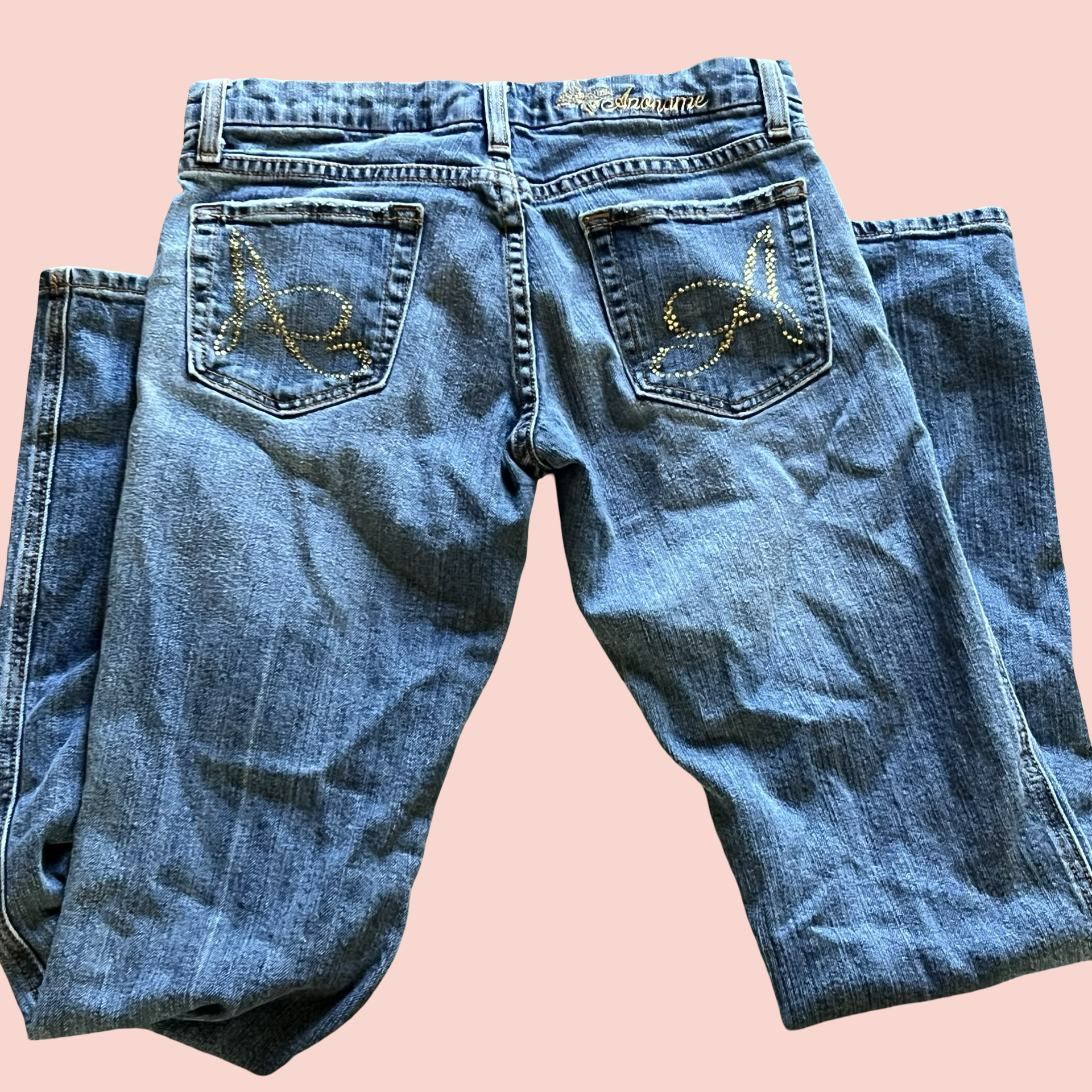 Tags: y2k jeans, early 2000s, low rise jeans, flare jeans, mcbling, rhinestone jeans, vintage denim, y2k fashion, 2000s denim, anona jeans