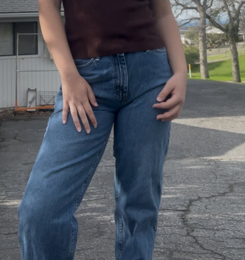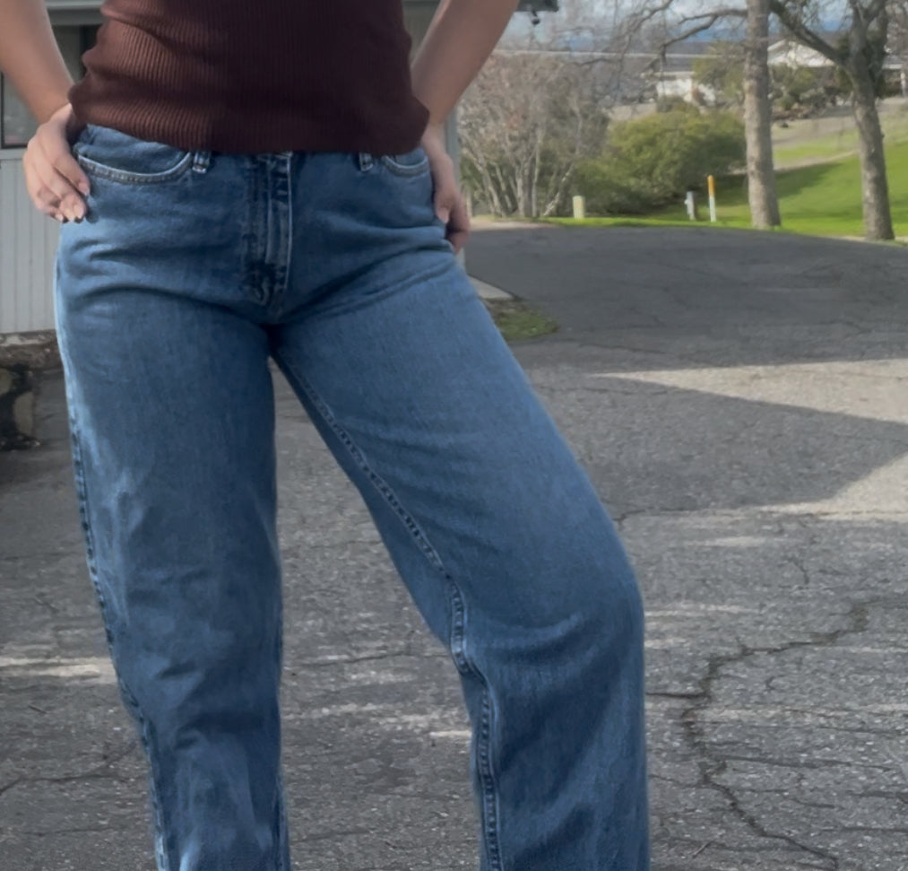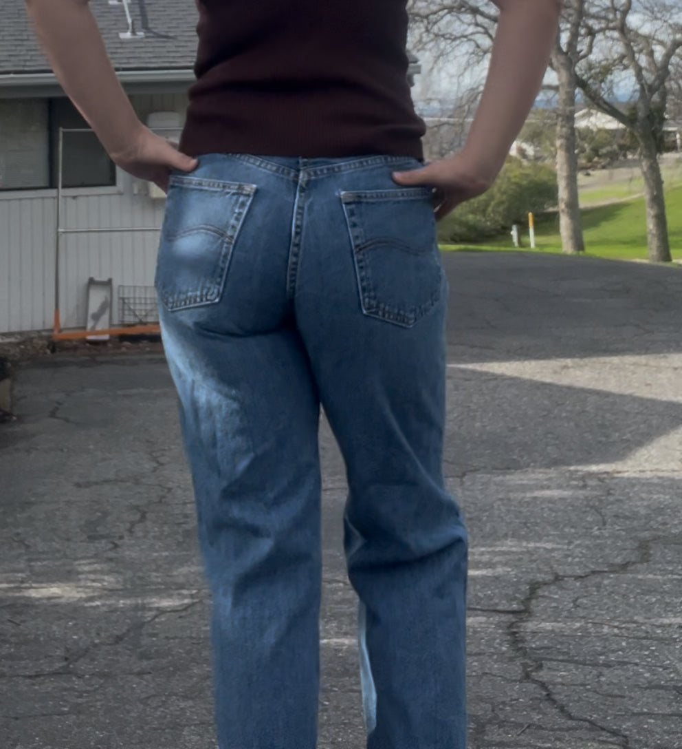 Classic Lee straight leg denim with a timeless fit. Medium wash blue with a structured, flattering high-rise feel. Easy everyday jeans that pair perfectly with a baby tee, sweater, or vintage jacket. Great Y2K / casual essential.