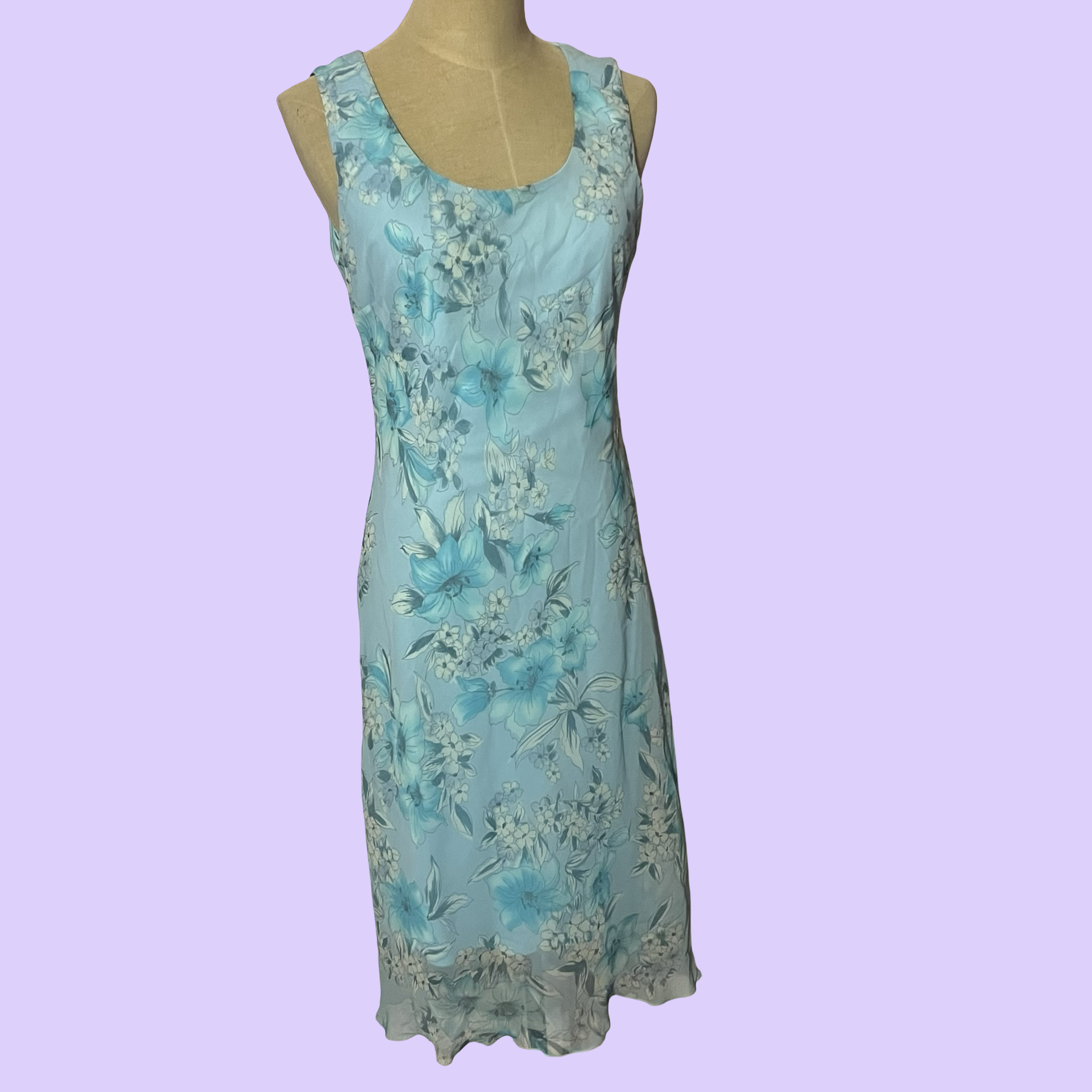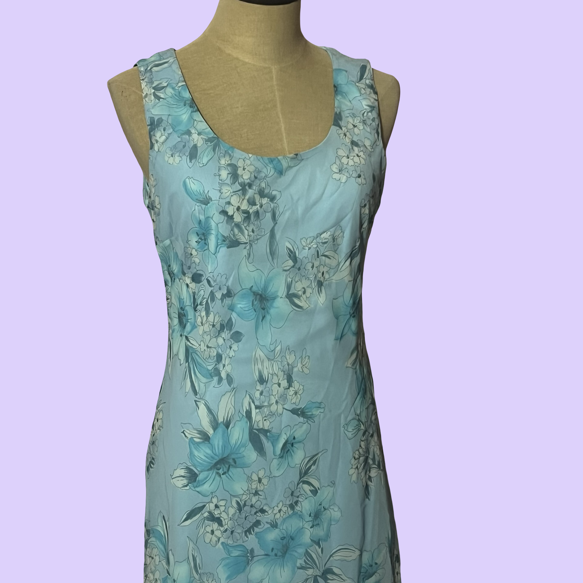 Vintage-style blue floral slip dress by Meghan Matthew’s 💙