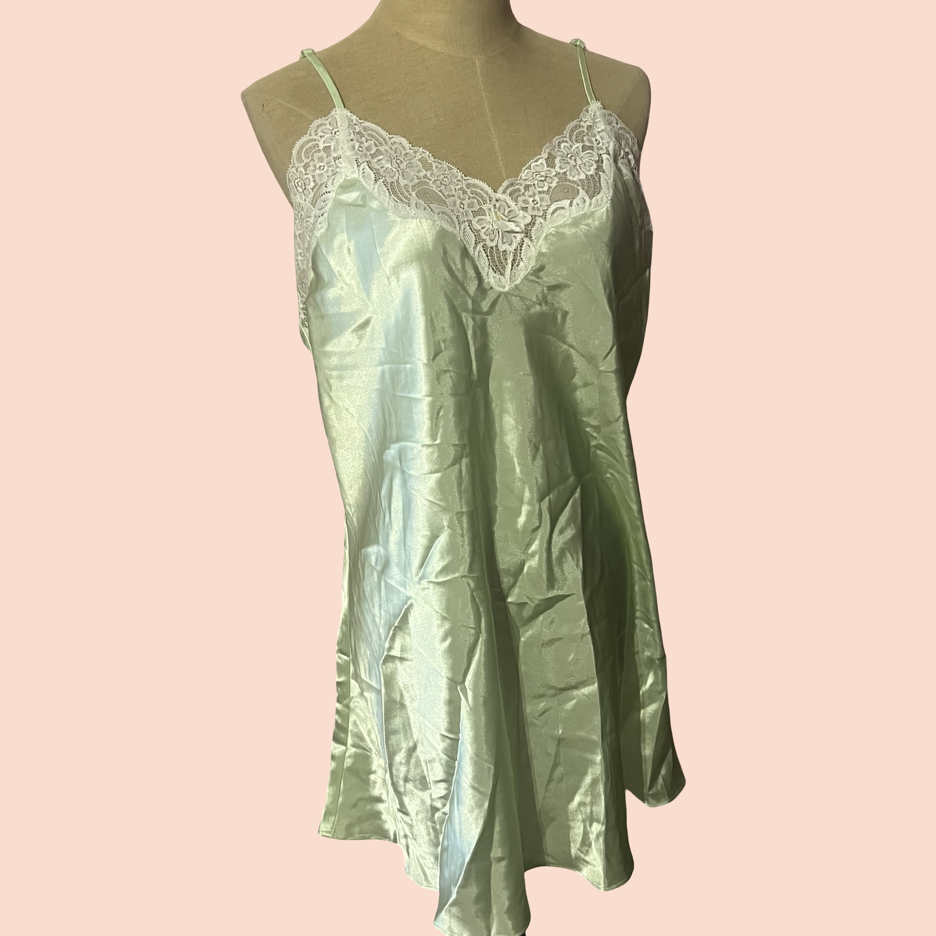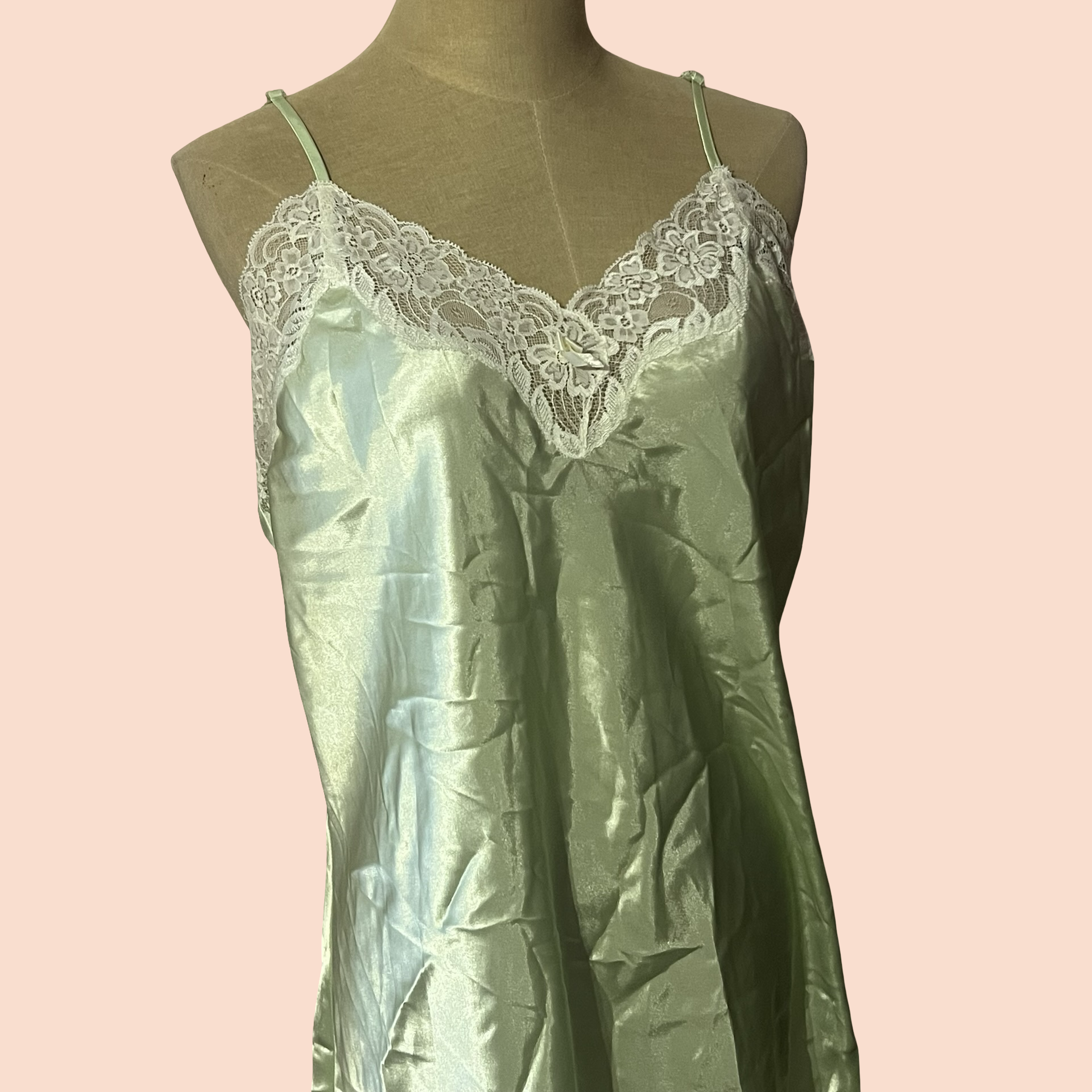 Vintage Morgan Taylor Intimates slip dress in a soft green satin ✨
