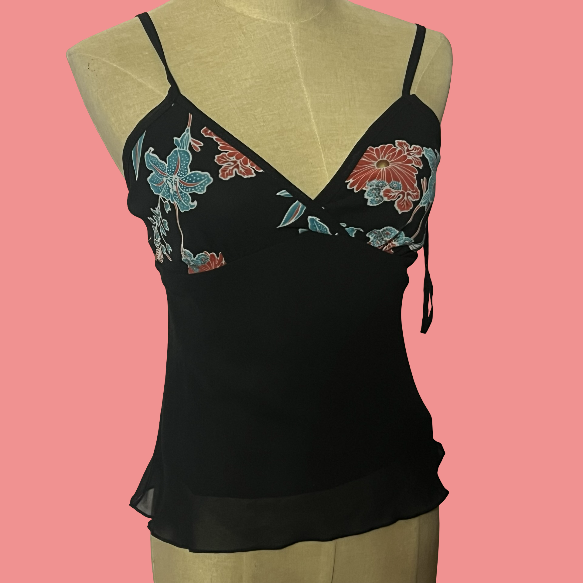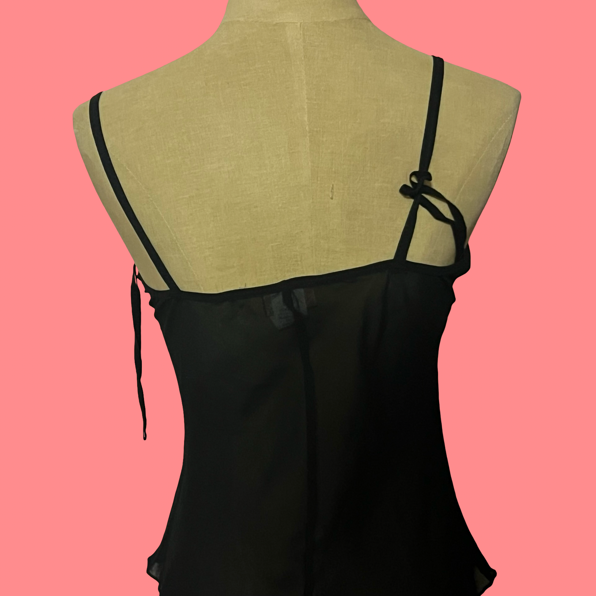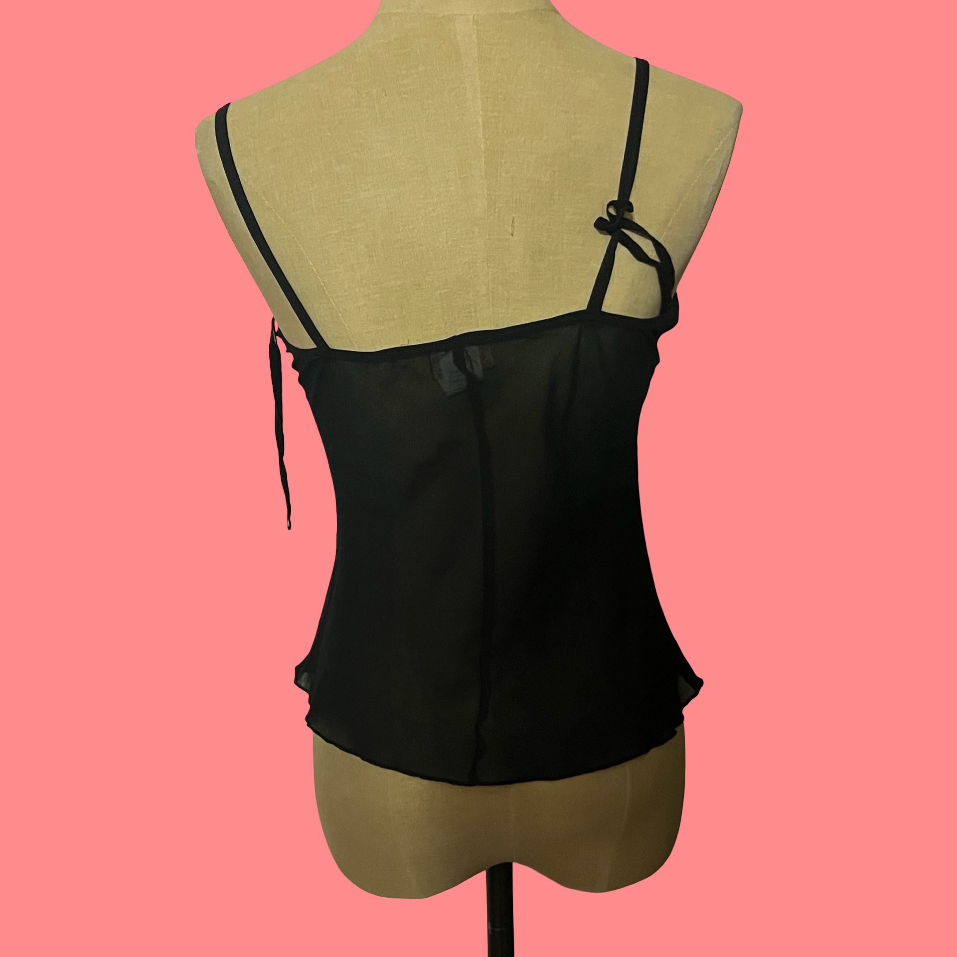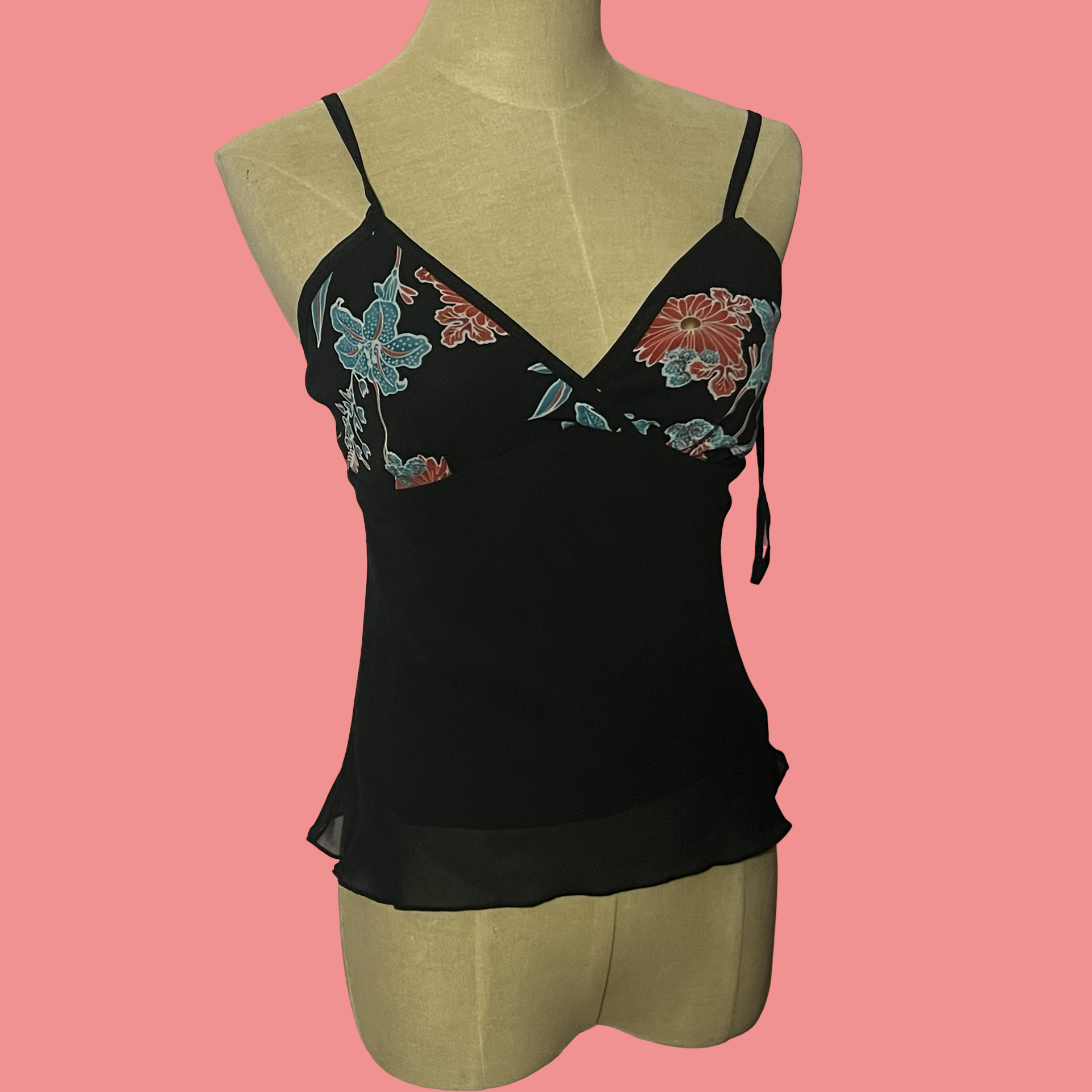Tags: y2k cami, floral top, vintage style, sheer top, fairy core, coquette, 2000s aesthetic, spaghetti strap top, summer top, going out top